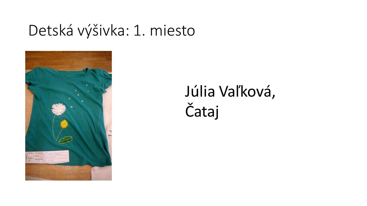 Úspešní sme (opäť) boli aj v detskej kategórii, kde prvé miesto obsadila Júlia Vaľková, ktorá si vyšila